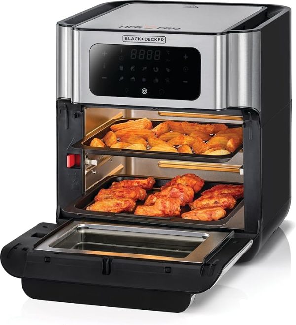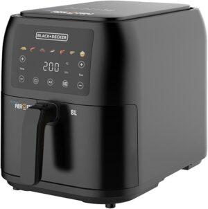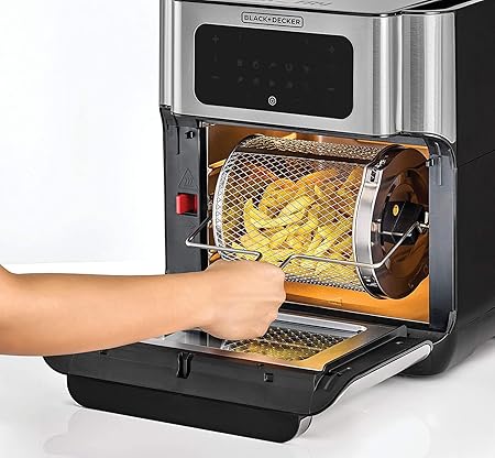 قلاية هوائية من بلاك اند ديكر، سعة 12 لتر، بقوة 1500 وات، موديل AOF100B5. مثالية لتحضير طعام صحي ومقرمش بأقل كمية من الزيت. تصميم عصري وسهل الاستخدام