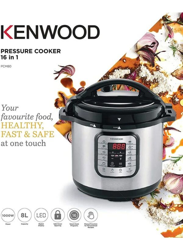 طنجرة ضغط كهربائية كينوود، 16 وظيفة، 8 لتر، 1200 واط، فضي – PCM80.000SS