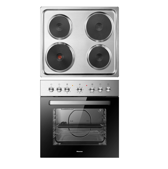 Hisense 4-Burner Stainless Steel Built-In Electric Hob and Oven, 60cm, Silver – H60BISPS