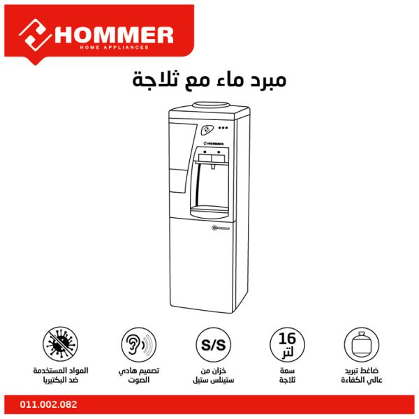 استمتع بالماء البارد والساخن في متناول يدك مع مبرد المياه من هومر. يتميز المبرد بخزان تخزين بسعة 16 لترًا، مما يتيح لك الحصول على الماء البارد والمنعش أو الماء الساخن في أي وقت تحتاجه. تصميمه الأنيق والعملي يجعله إضافة مثالية لأي مطبخ أو مكتب.