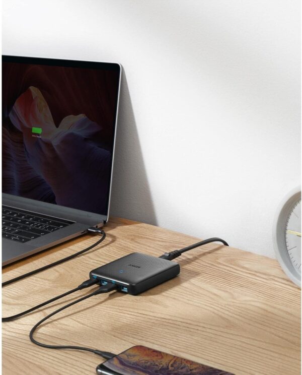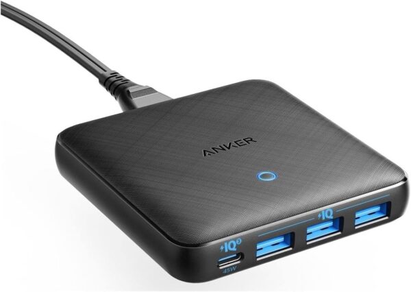 شاحن أنكر أتوم III بقوة 65 واط يمنحك تجربة شحن متعددة الأجهزة في تصميم نحيف وأنيق. يحتوي على منفذ USB-C بقوة 45 واط لشحن الحواسيب المحمولة بسرعة، إلى جانب 3 منافذ USB-A تشارك 20 واط لشحن الأجهزة المحمولة بكفاءة. يدعم تقنية PowerIQ 3.0 لضمان التوافق مع معظم الأجهزة الذكية، ويأتي مع كابل طاقة قابل للفصل وملصق للتثبيت، مما يجعله مثاليًا للاستخدام المنزلي والمكتبي.