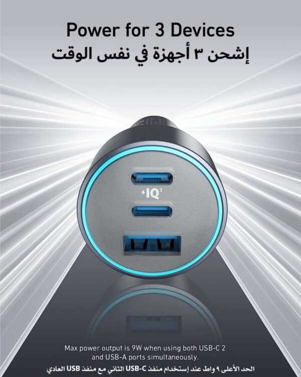 • مخرجين USB-C وUSB: يوفر شحنًا سريعًا لجهازين في وقت واحد بقدرة 52 وات.