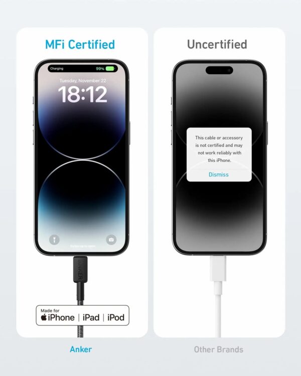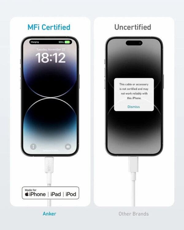 معتمد من Apple MFi لتوافق مثالي مع أجهزة Lightning.