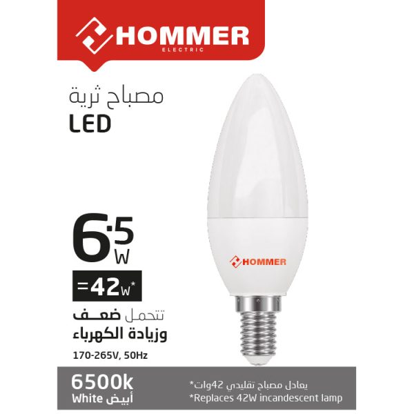 Hommer, Chandelier Bulb, LED, 6.5 Watt, White, 015.001.604.065