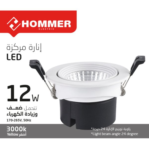 سلط الضوء على مساحاتك مع سبوت لايت LED بقدرة 12 وات من هومر، الذي يتميز بإضاءة صفراء دافئة ومريحة. مثالي لإبراز المناطق المرغوبة في الغرف أو لتوفير إضاءة دافئة وجذابة، مما يضيف لمسة جمالية ودافئة إلى الديكور الداخلي.