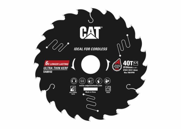قرص قطع خشب رفيع كاتربيلر، 1 مم، 40 سن، 184 مم، أسود – DA08102
