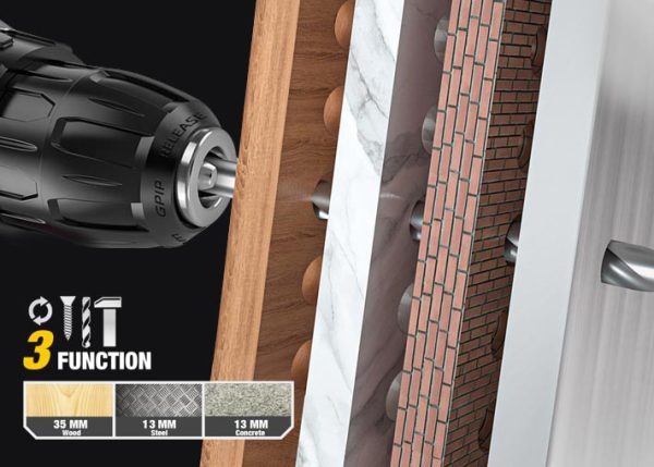 - رأس تشاك 13 ملم بغطاء واحد لتبديل الرؤوس بسرعة وأمان.
