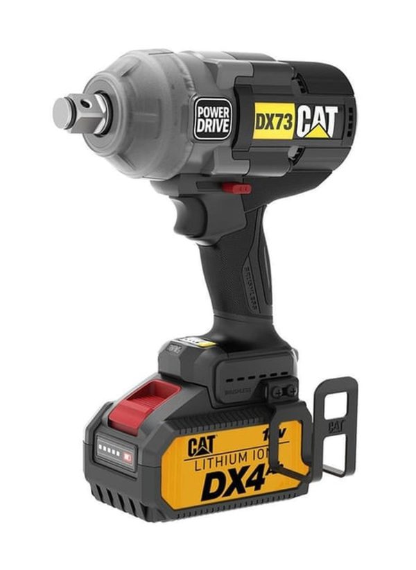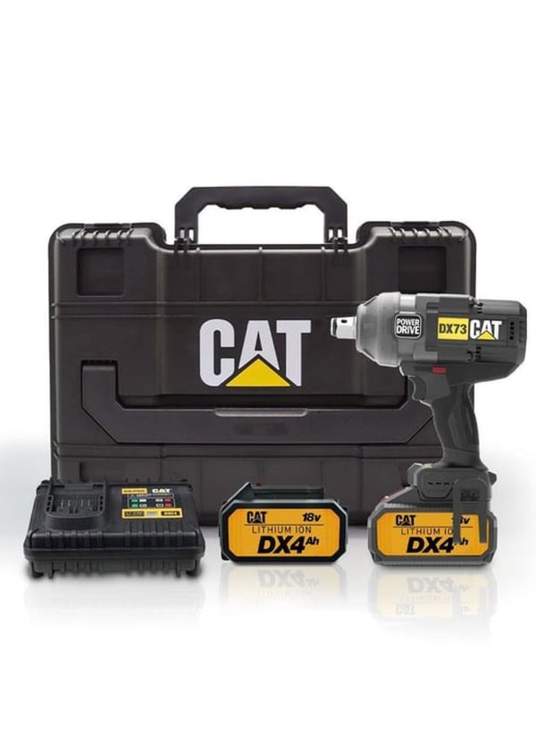 مفك كاتربيلر، 3/4 بوصة، 18 فولت، 1700 نيوتن متر، مع بطارية 4 أمبير وشاحن، أسود وأصفر – DX73C