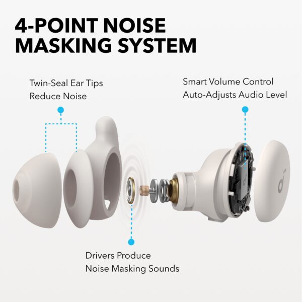 استعد لنوم هادئ ومريح مع سماعات النوم ساوندكور سليب A20 من أنكر، المصممة خصيصًا للنوم العميق. تعتمد على نظام عزل الضوضاء المكون من 4 نقاط، مع سدادات أذن ثنائية الإغلاق لعزل سلبي أقوى بثلاث مرات. تناسب النوم على الجنب بفضل تصميمها ثلاثي الأبعاد وأجنحتها الهوائية المصنوعة من مواد فائقة النعومة. توفر عمر بطارية يصل إلى 80 ساعة في وضع النوم و55 ساعة في وضع البلوتوث. وبفضل تقنية تحليل النوم، ستحصل على رؤى دقيقة حول جودة نومك وحركتك طوال الليل.