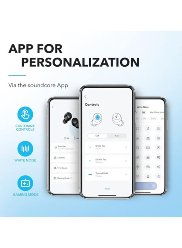- سماعة الأذن ساوند كور A20i من أنكر تمنحك تجربة صوتية استثنائية مع إمكانية تخصيص الصوت عبر 22 معادلًا صوتيًا مسبقًا. توفر السماعة صوتًا غنيًا وواضحًا بفضل تكنولوجيا BassUp التي تعزز الصوت العميق. تتميز السماعة ببطارية تدوم حتى 28 ساعة مع علبة الشحن، كما توفر الشحن السريع حيث تكفي 10 دقائق من الشحن للحصول على ساعتين إضافيتين من الاستماع. مع بلوتوث 5.3، يمكنك التمتع باتصال مستقر وسريع. تصميمها الخفيف والمريح يضمن لك الراحة التامة خلال الاستخدام الطويل.