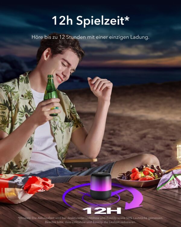 • مكبر الصوت ساوند كور جلو 8 وات من انكر هو الحل المثالي لحفلاتك الخارجية أو داخل المنزل. يتميز هذا المكبر بقدرة 8 وات مع رادياتور سلبي واحد لتوفير صوت ديناميكي بزاوية 360 درجة من جميع الاتجاهات، مما يعزز تجربة الاستماع. يأتي مكبر الصوت مع إضاءة كاملة الجسم تتزامن مع الموسيقى لإضفاء جو من المتعة على أي حفلة. تتمتع السماعة بحماية IP67 ضد الماء والغبار، مما يجعلها مقاومة للظروف الجوية المختلفة. يمكنها العمل لمدة تصل إلى 12 ساعة على شحنة واحدة، مع إمكانية استخدام تأثيرات الإضاءة. كما يمكنك توصيل أكثر من 100 مكبر صوت باستخدام تقنية PartyCast 2.0 للحصول على تجربة صوتية مذهلة مع إضاءة مدمجة.