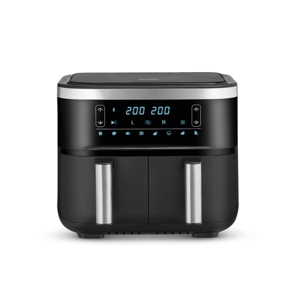 تثير القلاية الهوائية المزدوجة SEVERIN FR 2453 إعجاب المستخدمين بسلتين للقلي يمكن التحكم فيهما بشكل فردي. سواء باستخدام سلة واحدة فقط، أو سلة واحدة بدرجة حرارة 120 °C وأخرى بدرجة حرارة 200 °C أو بتشغيلهما بشكل متزامن – مع 8 برامج تلقائية أو إعدادات مخصصة، يمكنك تحضير وجبة رئيسية بسهولة وسرعة. تحتوي كل سلة قلي على حوالي 3.25 لتر، وهو ما يعادل حوالي 650 جرام من البطاطس المقلية. كما يمكن تجفيف الطعام بين 40 و 80 °C باستخدام وظيفة التجفيف. لا حدود لخيالك في المطبخ.