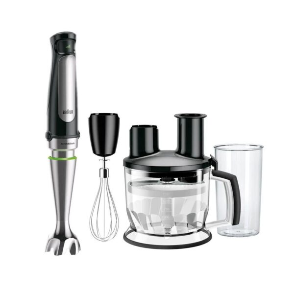 - ملحقات متعددة: تشمل كوبًا سعة 600 مل خالٍ من مادة BPA، وأداة خفق، ومحضر طعام، وشفرة تقطيع، وعجانة عجين، وغيرها.