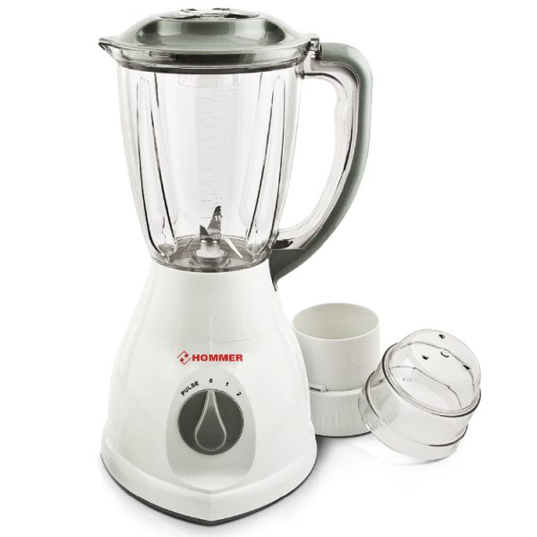 خلاط لتحضير العصائر ورحاية لطحن التوابل بقدرة 400 وات من هومر. يأتي بسعة 1.5 لتر ويتميز بخاصية التحكم بسرعتين لملاءمة مختلف الاستخدامات. مثالي لتحضير العصائر الطازجة وطحن التوابل بسهولة.