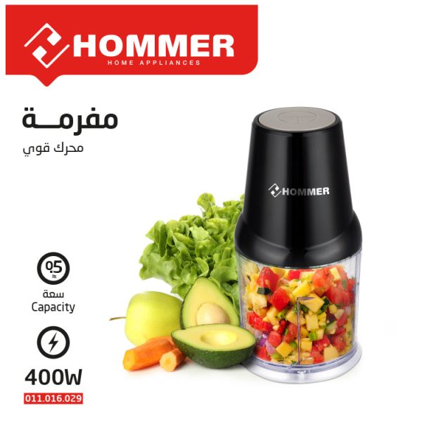 استمتع بطحن فعال مع مفرمة ست البيت من هومر بسعة 0.5 لتر، بقوة 400 وات. تحتوي على وعاء شفاف ورأس موتور بلاستيكي لضمان المتانة، مع سرعة واحدة مثالية لمهام التحضير اليومية.