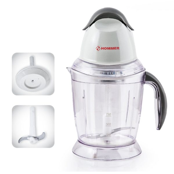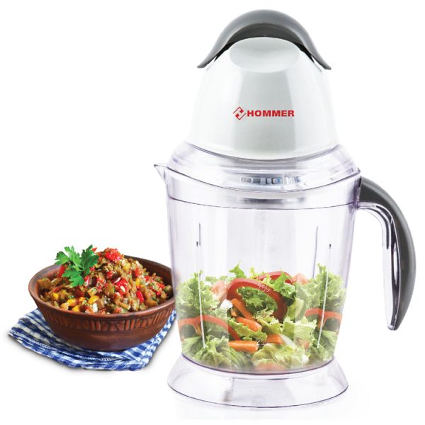 جهاز مفرمة من هومر بسعة 1 لتر وقوة 300 وات، يجمع بين وظائف المفرمة والخلاط. يأتي مع ملحقات متعددة تشمل مضرب، ومفرمة للحوم، ومفرمة للكباب، مما يجعله أداة مثالية لتحضير وجبات متنوعة بكفاءة وسرعة.