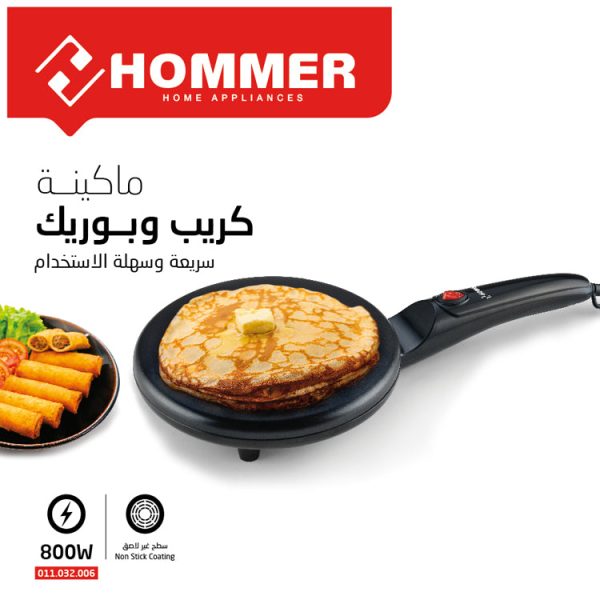 اصنع الكريب والبوريك اللذيذ بسهولة باستخدام صانعة الكريب والبوريك من هومر بقدرة 800 وات، مصممة لتقديم نتائج مثالية في كل مرة. مثالية للاستخدام اليومي مع تصميم عملي يضمن تجربة طهي مريحة وسريعة.