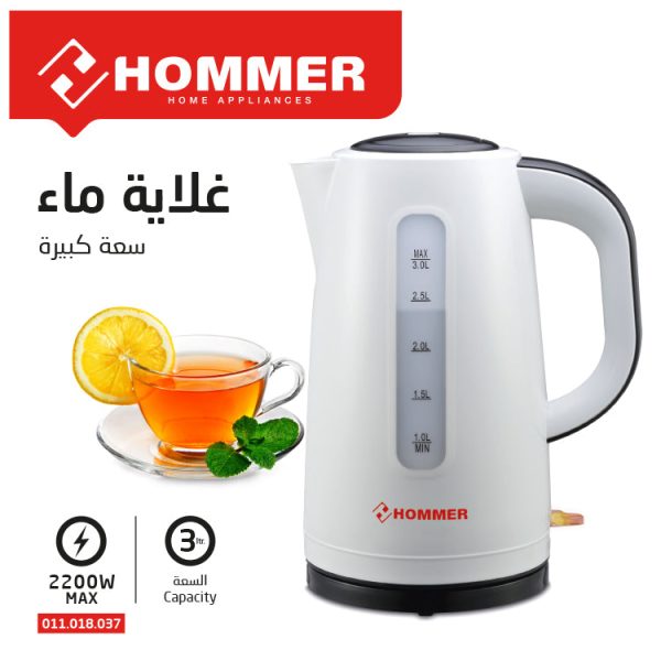 Hommer, Electric Kettle, Plastic, 3 Liters, 2200 Watt, 011.018.037