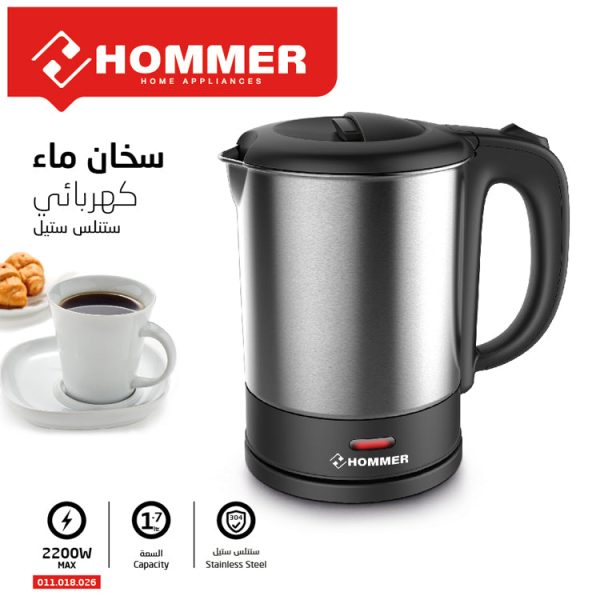 Hommer, Stainless Steel Electric Kettle, 1.7 Liters, 2200 Watts, 011.018.026