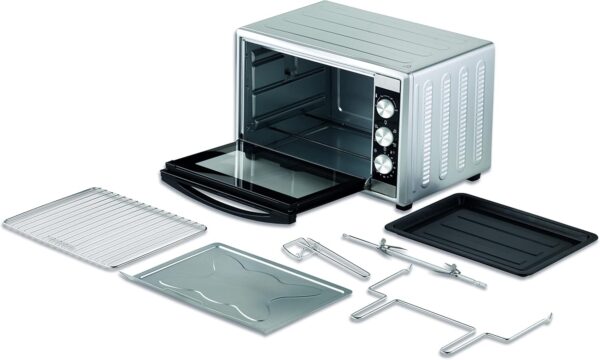 - فرن كينوود الكهربائي MOM70.000SS يتميز بسعة 70 لترًا، مما يجعله مثاليًا للعائلات أو لمن يستمتعون بطهي وجبات كبيرة. يتيح لك هذا الفرن متعدد الاستخدامات الخبز والشواء والتحميص والشواء وإذابة الثلج بسهولة، مع مجموعة واسعة من الوصفات. يتميز بقوة 2300 واط، مما يوفر تسخينًا سريعًا وطهيًا متساويًا. مع نطاق درجة حرارة يتراوح بين 90 و230 درجة مئوية ومؤقت 60 دقيقة مع جرس تنبيه، يمنحك تحكمًا دقيقًا في أوقات الطهي ودرجات الحرارة. يأتي الفرن مع العديد من الملحقات المفيدة، بما في ذلك صينية التنقيط، ورف الشواء، وصينية فتات الخبز، وملحق سيخ الشواء، وجميعها آمنة للغسل في غسالة الأطباق لسهولة التنظيف.