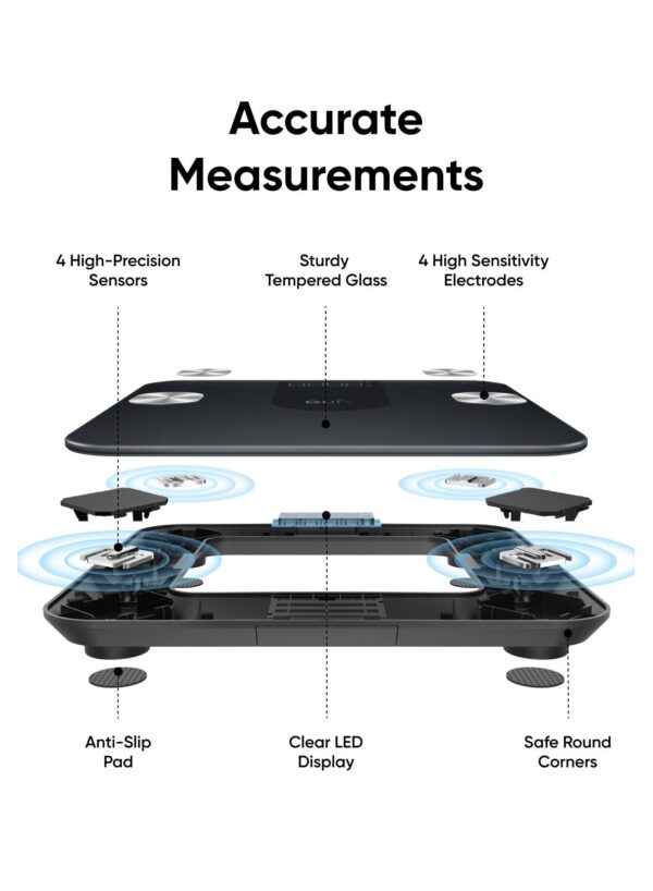ميزان يوفي الذكي A1 من أنكر يجمع بين الحجم الصغير والدقة العالية لتوفير تحليل شامل لجسمك. بقياس 26 × 26 سم، يتناسب بسهولة مع أي مساحة في المنزل. يوفر 12 قراءة مختلفة تشمل الوزن، نسبة الدهون، الكتلة العضلية والعظمية وغيرها، لمتابعة رحلة لياقتك بدقة. يتصل بالهاتف عبر البلوتوث ويعرض البيانات تلقائيًا في التطبيق. يمكن إنشاء حتى 16 ملف مستخدم، مما يجعله مناسبًا للعائلات. تصميمه العصري وسهولة الاستخدام يجعلان من هذا الميزان خيارًا مثاليًا للمراقبة الصحية اليومية.