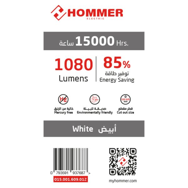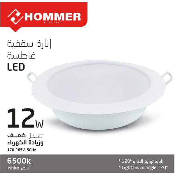 إنارة سقفية غاطسة بقدرة 12 وات من هومر، مزودة بتقنية LED بلون أبيض. تتميز بعمر افتراضي يصل إلى 15,000 ساعة، مما يجعلها مثالية للإضاءة الفعالة والطويلة الأمد. تصميم عصري وأنيق يناسب مختلف أنواع الديكورات الداخلية.