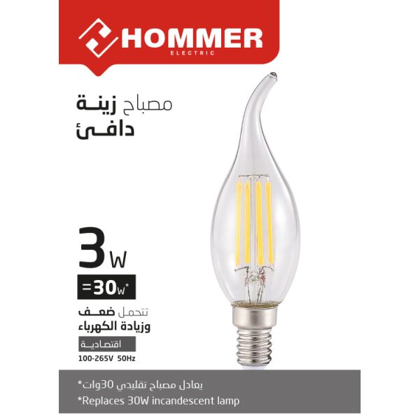 أضف لمسة من الأناقة إلى مساحتك مع مصباح الزينة من هومر بقدرة 3 وات. يتميز هذا المصباح بتقنية الفيلامنت التي توفر إضاءة دافئة وجميلة، ويعد بديلاً مثاليًا لمصابيح الإضاءة التقليدية بقدرة 30 وات. مع عمر افتراضي يصل إلى 15,000 ساعة، فهو صديق للبيئة وخالٍ من الزئبق، مما يجعله خيارًا مثاليًا للإضاءة الموفرة والموثوقة.
