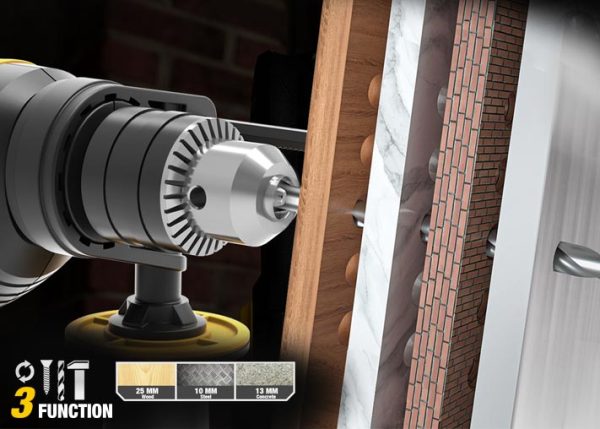 - مخزن 13 مم: متوافق مع عدة أنواع من ريش الحفر.