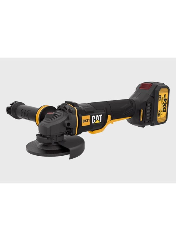 صاروخ جلخ كاتربيلر، 18 فولت، 115 مم، مع بطارية 4 أمبير وشاحن، أسود وأصفر – DX31C